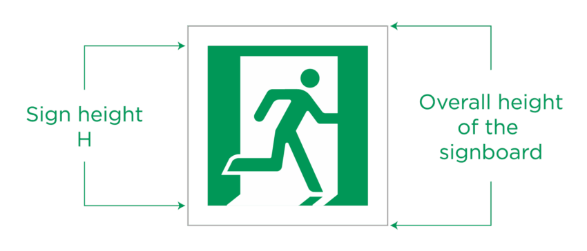 - The sign height is the printed area/safety colour green only, the below image helps explain this.