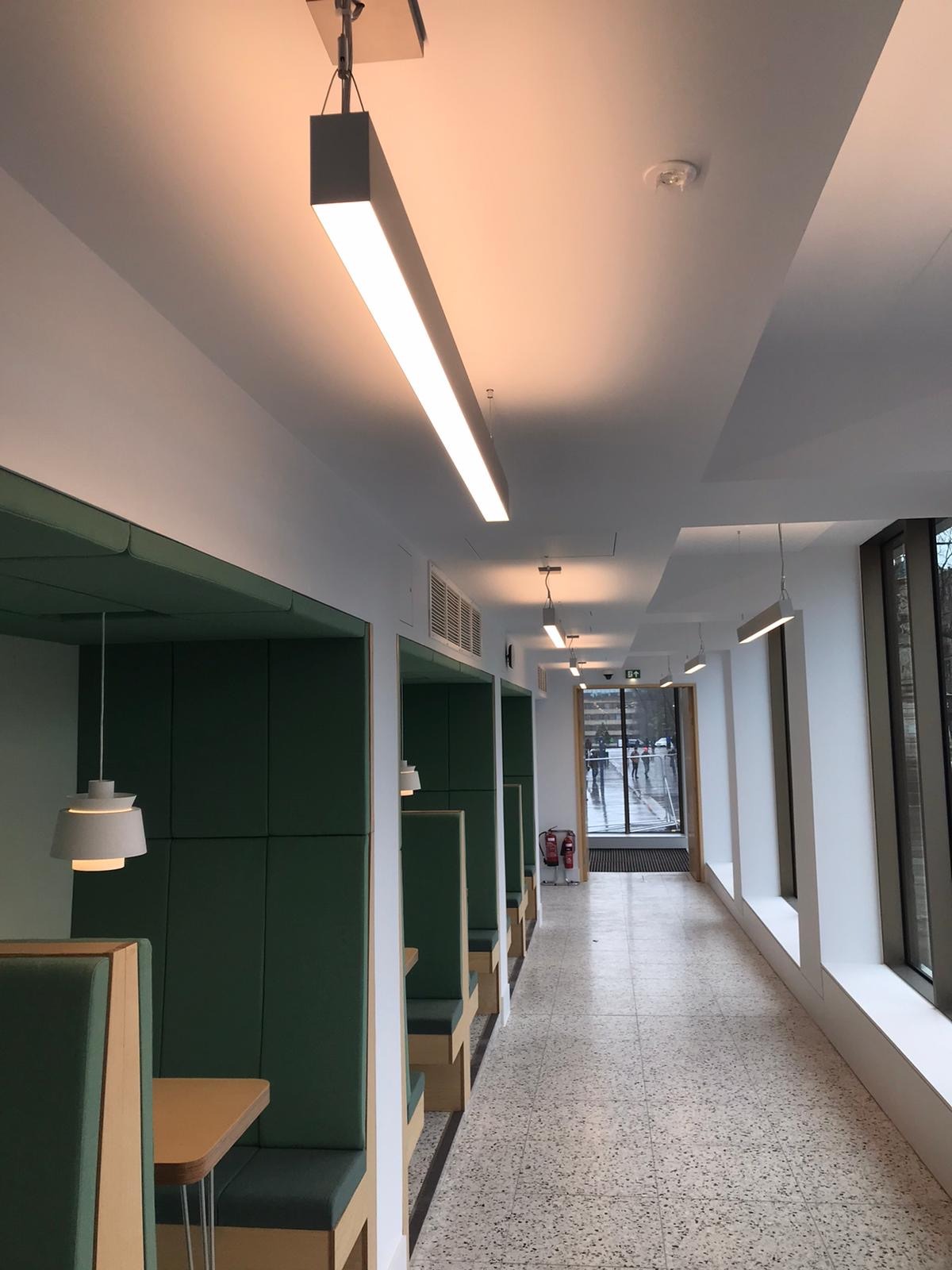 What makes Specto-XT an attractive option from the University’s point of view is its ease of installation. Specto-XT uses the latest wireless mesh technology to replace wired communications signals between each luminaire. 868MHz secure radio communication offers excellent transmission distance within buildings with each luminaire acting as a wireless node to repeat commands on to the next luminaire. This provides a robust system that will always find a communication path.